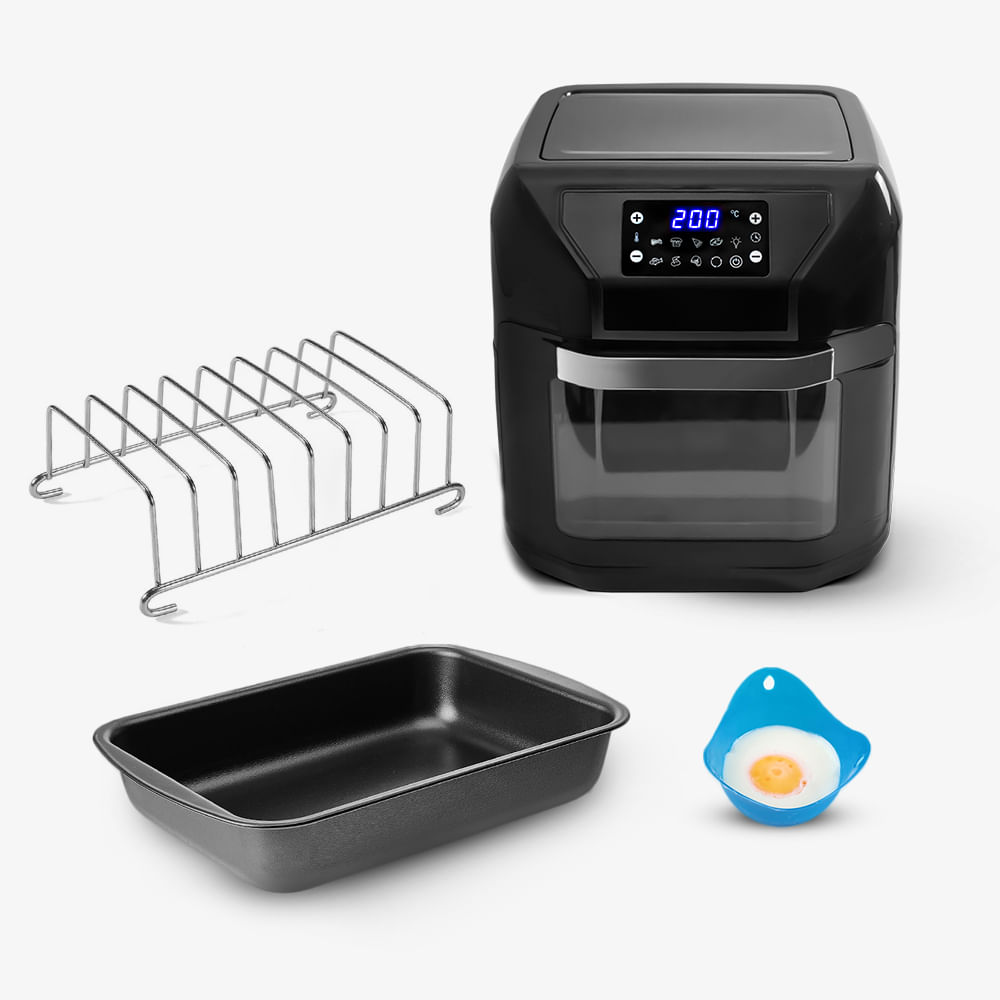 Com esta assadeira multifuncional você prepara bolos, pães, tortas, massas, ela assa, gratina e cozinha tudo isso sem óleo, verdadeira perfeição.