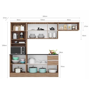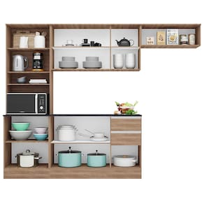 Cozinha Compacta Poliman Paris com 9 Portas, 2 Gavetas e 6 Prateleiras - 260cm de largura