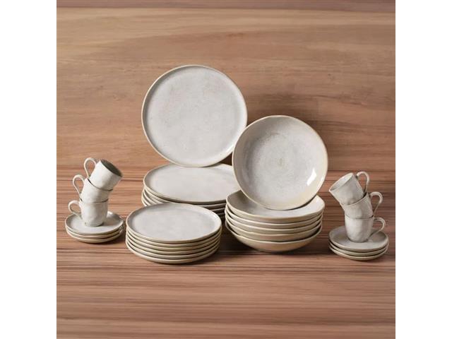 ESPECIFICAÇÕES DO PRODUTO: Coleção: Bio Latte. 6 Pratos Rasos, 6 Pratos Fundos, 6 Pratos de Sobremesa, 6 Xícaras de Café 6 Pires de Café