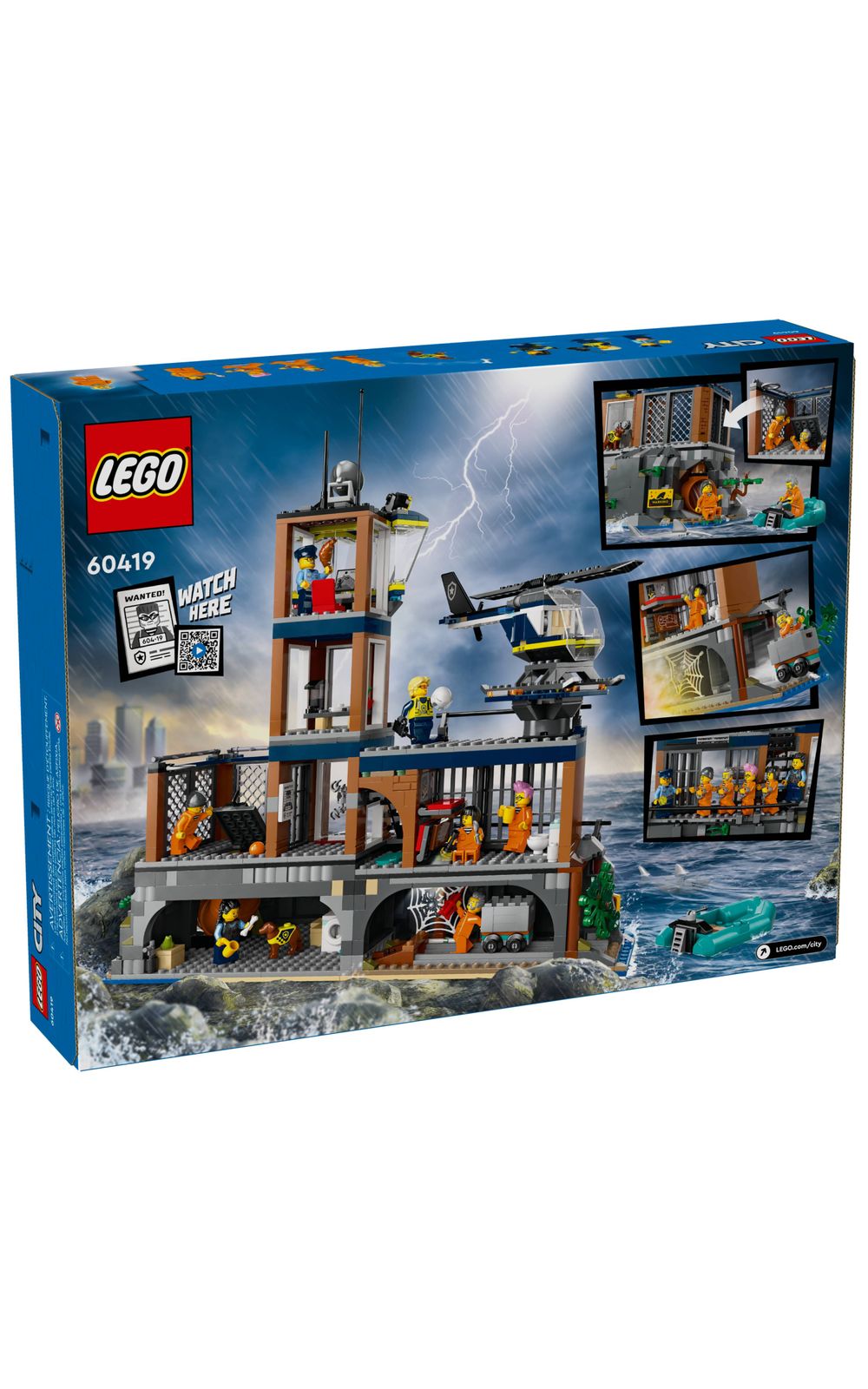 Cod LEGO: 60419Descrição Comercial: A Ilha da Prisão da Polícia LEGO® City (60419) é o lar de alguns dos bandidos mais notórios da cidade, mas eles têm outros planos! Aventuras cheias de ação aguardam você com este incrível conjunto de brinquedo, apresentando uma prisão à beira de um penhasco repleta de recursos e funções. Também inclui um helicóptero, um barco policial, um bote, 3 minifiguras de oficiais e 4 prisioneiros, além de figuras de cães policiais e tubarões.Este brinquedo de ilha-prisão está repleto de detalhes interiores para brincadeiras imaginativas, incluindo uma sala de controle, uma sala de descanso para oficiais, hall de entrada, um pátio com uma saída de emergência secreta, uma sala de canil, uma cela com camas e um túnel de fuga que leva a uma mina abandonada, além de uma lavanderia de prisioneiro com ferramentas de jailbreak. Outros detalhes incluem um heliporto e uma falésia com uma pedra solta para uma saída explosiva.Leve seu filho em uma emocionante aventura de construção como aplicativo LEGO Builder. Aqui eles podem acompanhar o progresso da construção, ampliar e girar conjuntos em 3D para visualizar modelos de todos os ângulos enquanto constroem.Brinquedo da polícia da prisão da ilha para maiores de 7 anos A Ilha da Prisão da Polícia LEGO® City está repleta de recursos e funções divertidas para infinitas horas de brincadeiras imaginativasO que há neste conjunto de construção LEGO® Uma ilha-prisão edificável com um penhasco, prisão, barco da polícia, bote, helicóptero, minifiguras de 3 oficiais e 4 prisioneiros, além de figuras de cães policiais e tubarõesUma ilha-prisão LEGO® repleta de recursos divertidos Inclui uma cela com um túnel de fuga que leva a uma mina abandonada, além de um pátio com uma escotilha de fuga secreta que leva a um cano de esgoto abandonadoInclui um pôster de procurado Com a permissão de um adulto, as crianças podem escanear o código QR nas instruções de construção ou na caixa para uma divertida aventura em vídeo LEGO® City PoliceUm presente LEGO® para maiores de 7 anos Surpreenda seu herói do dia a dia ao dar este brinquedo policial como presente de feriado ou aniversário para fãs de conjuntos de construção LEGO e brincadeiras imaginativasBrincadeira criativa sem limites As crianças liberam mais diversão e aventuras ao adicionar este conjunto a outros (vendidos separadamente) da linha LEGO® CitySobre os conjuntos LEGO® City LEGO City é um lugar onde as crianças podem dar liberdade à sua imaginação ilimitada, com estruturas, veículos e cidadãos que as motivam a construir, criar, explorar e brincarA ilha-prisão neste conjunto de construção de 980 peças mede mais de 37 cm de altura, 40 cm de largura e 16 cm de profundidadeIdade: 8 anos ou maisIdade Mínima: 7Limite de venda: 5Número de peças: 980Peças: 700 - 999Recomendações (pdp): ATENÇÃO: NÃO RECOMENDÁVEL PARA CRIANÇAS MENORES DE 3 (TRES) ANOS POR CONTER PARTE(S) PEQUENA(S) QUE PODE(M) SER ENGOLIDA(S) OU ASPIRADA(S). NÃO APROPRIADO PARA MENORES DE 3 ANOS Nº Registro: 005828/3717naorecomendado_3anos: SimqtdVendasPorCliente: 5