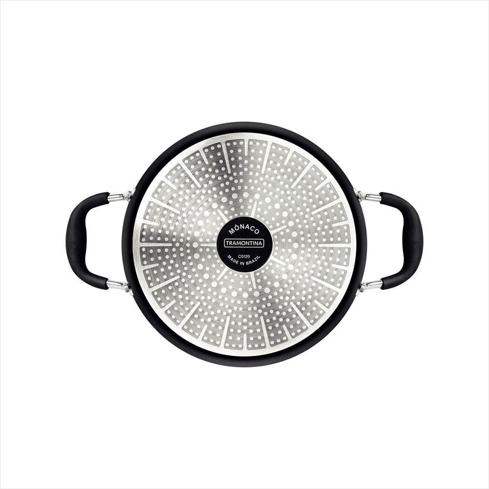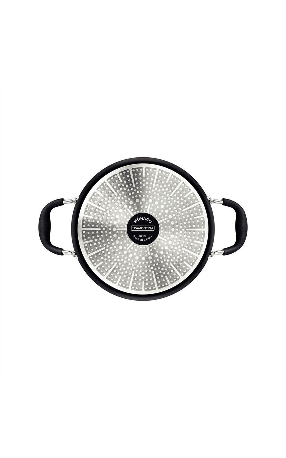 Para preparar deliciosas receitas para aquele almoço ou jantar especial, conte com a caçarola Tramontina Mônaco Induction em alumínio com revestimento interno e externo antiaderente Starflon Premium preto com tampa de vidro 20 centímetros de diâmetro 2,6 litros! Ela é produzida em alumínio reforçado com revestimento interno e externo de antiaderente Starflon Premium, características que evitam que os alimentos grudem os alimentos, a tornam mais durável e não prejudicial à sua saúde. Ela cozinha e aquece seus alimentos de maneira uniforme e vem acompanhada de uma tampa de vidro temperado com borda em aço inox e saída de vapor que auxiliam no preparo. Suas alças e pegador são metálicos com proteção de silicone que reduz a propagação de calor, aumentando a segurança e melhorando seu manuseio. Além disso, ela é fácil de limpar e pode ser lavada na máquina de lavar louças, facilitando seu dia a dia!