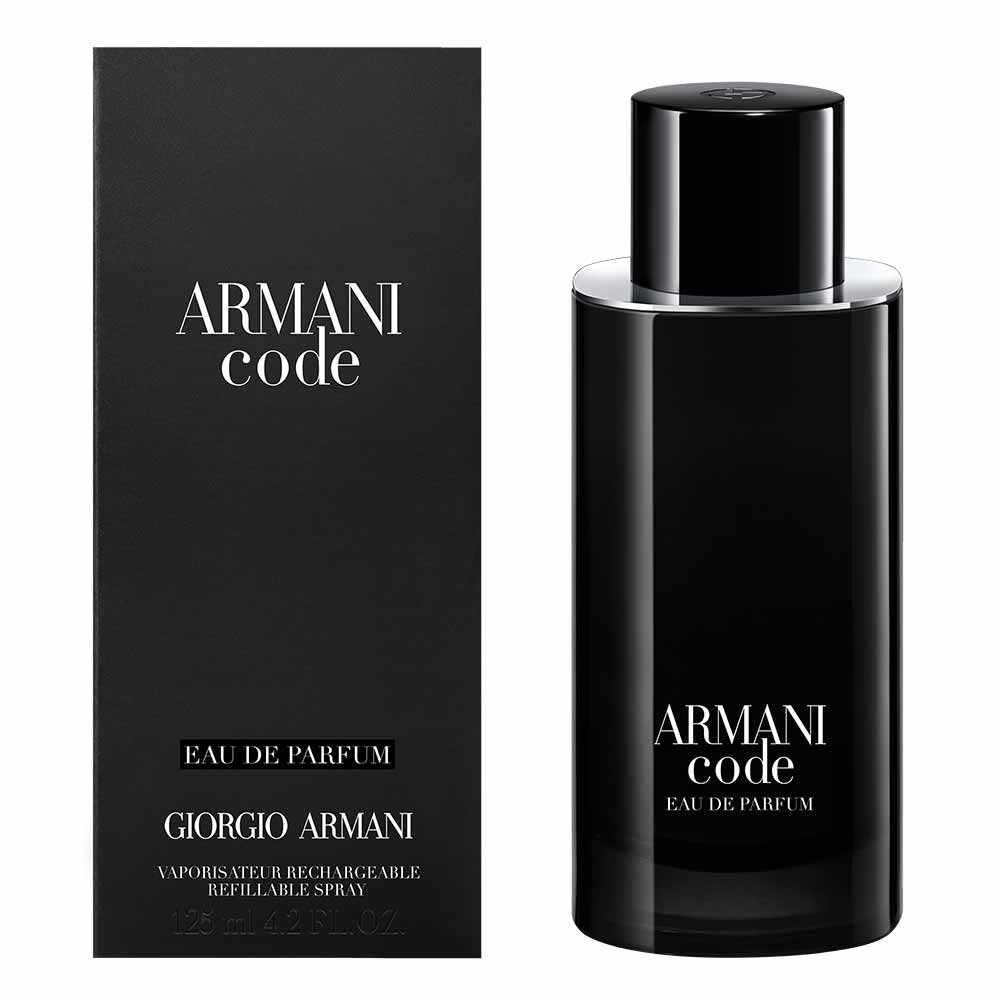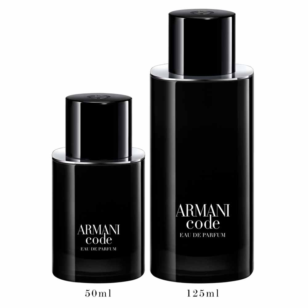 Em um novo frasco, ainda mais sofisticado e moderno, Armani Code reescreve os códigos da masculinidade através do contraste entre força e sensibilidade, e defende uma visão do masculino livre de padrões, de imposições e de todos os estereótipos, representando assim um homem à frente do seu tempo. O frasco Armani Code Eau De Parfum, assim como o resto da linha, é elaborado em formato quadrado, porém arredondado, em preto elegante com letras brancas contrastantes.