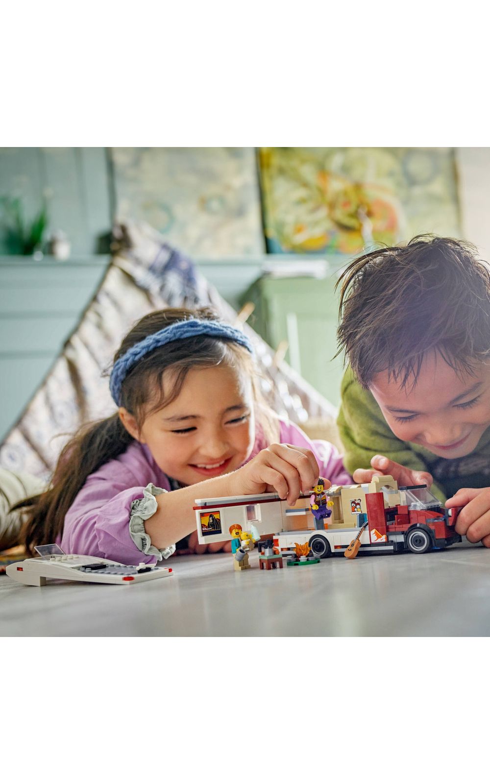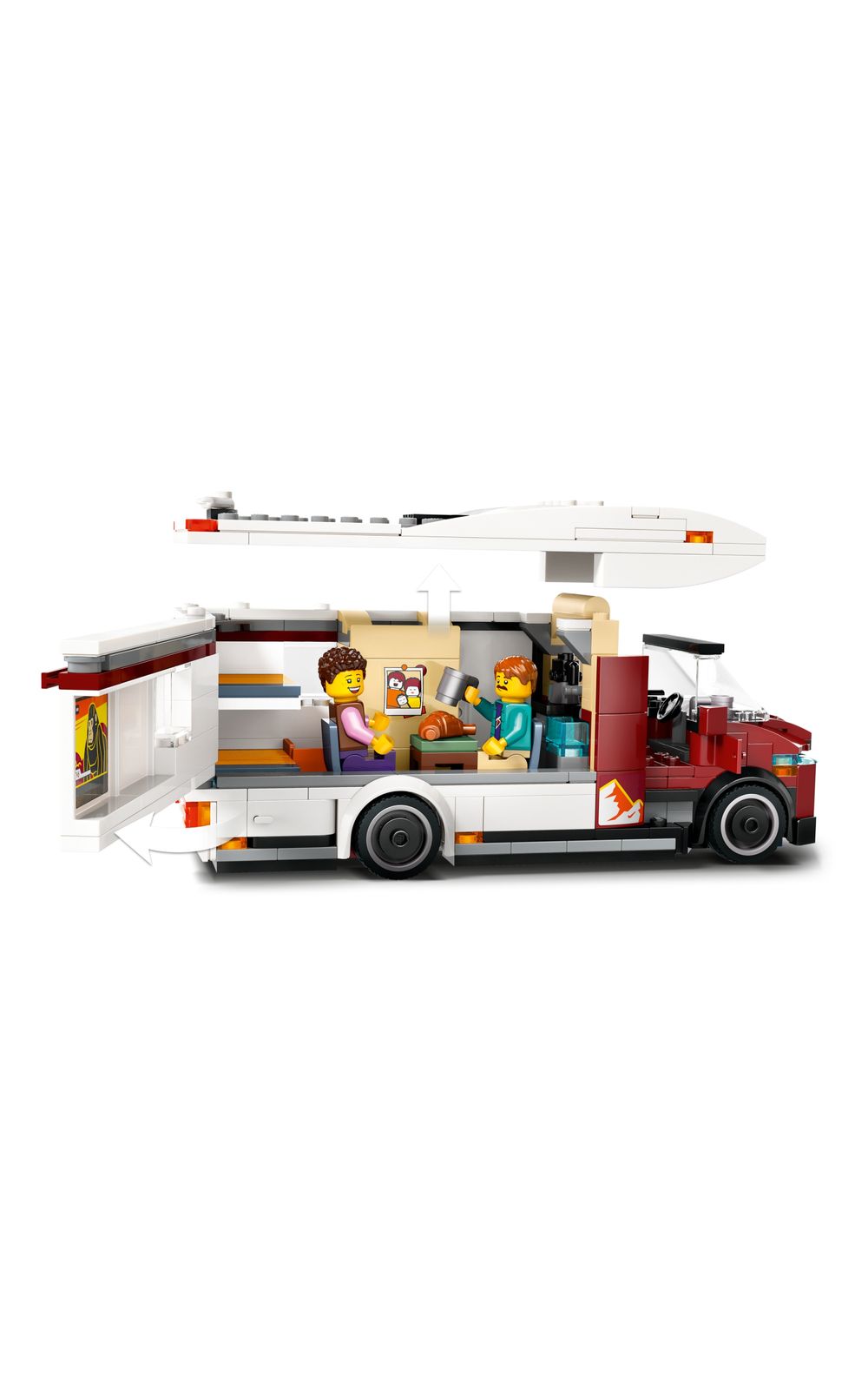 O que vem na caixa Este conjunto de veículos inclui tudo o que as crianças precisam para construir uma van de acampamento com um espaço de vida detalhado, além de um cenário de fogueira, 2 minifiguras e uma figura de bebê