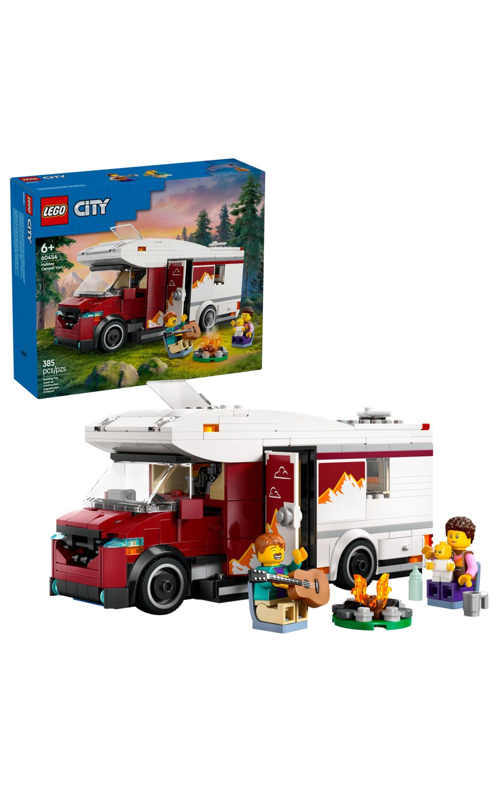Descrição Comercial: As crianças podem viajar para onde sua imaginação as levar com o brinquedo LEGO® City Holiday Adventure Camper Van (60454). Este divertido conjunto de veículo de férias para crianças de 6 anos ou mais vem com muitos recursos realistas, incluindo um espaço de estar moderno com cozinha, banheiro, beliches e berço. O conjunto também inclui uma mesa e 2 cadeiras para uso interno e externo, além de uma guitarra de brinquedo e fogueira. Basta adicionar as minifiguras da mãe e do pai com seu bebê para brincadeiras imaginativas e contação de histórias.