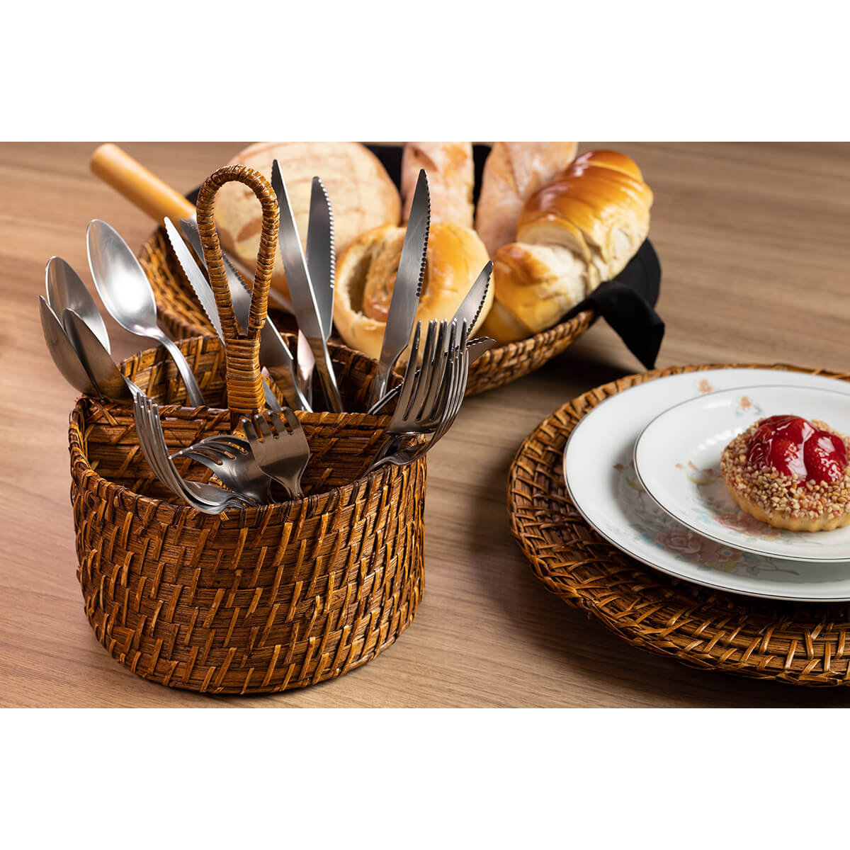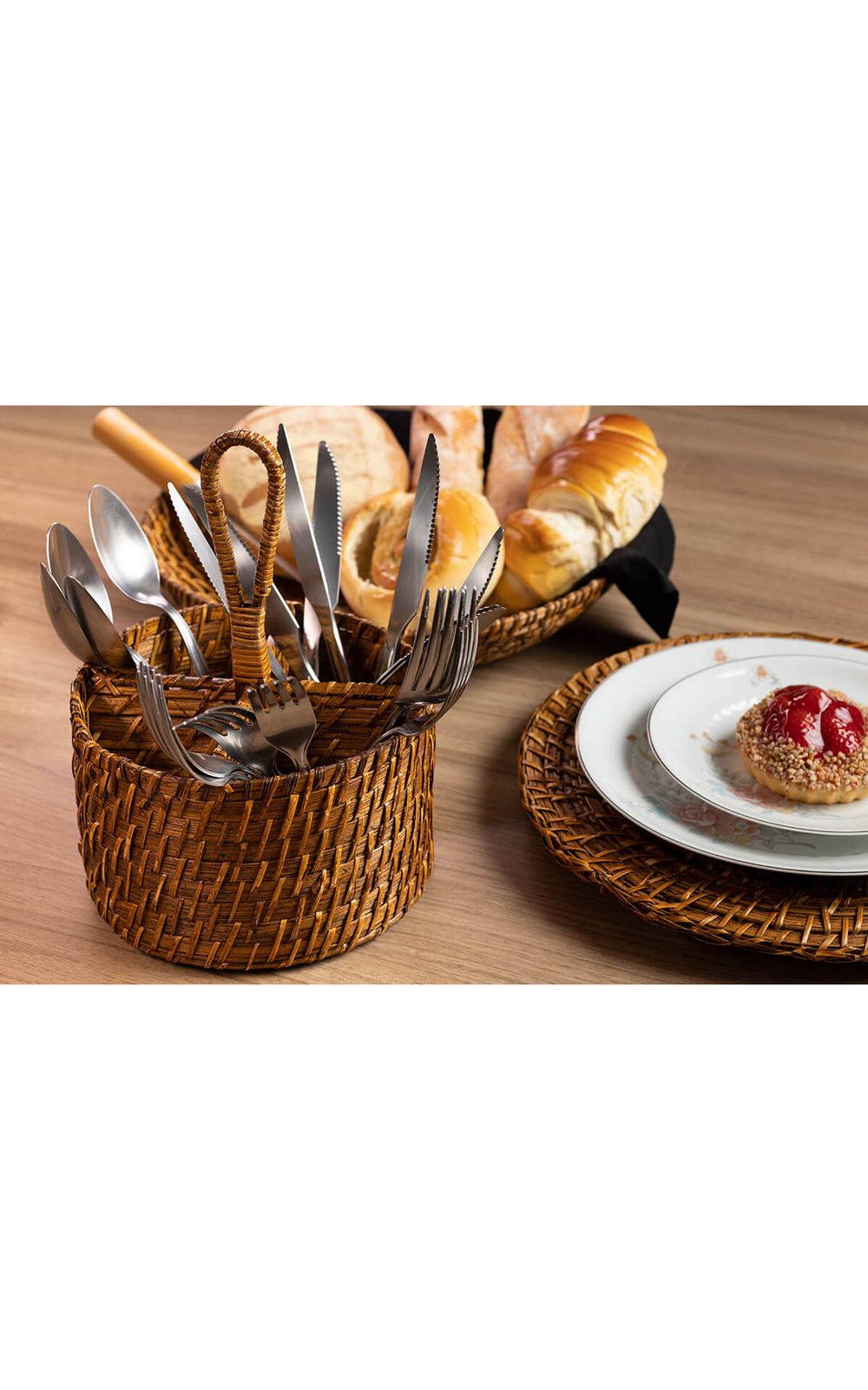 Fabricado em rattan de alta qualidade, o porta utensílios combina a beleza do design natural com a durabilidade do material.