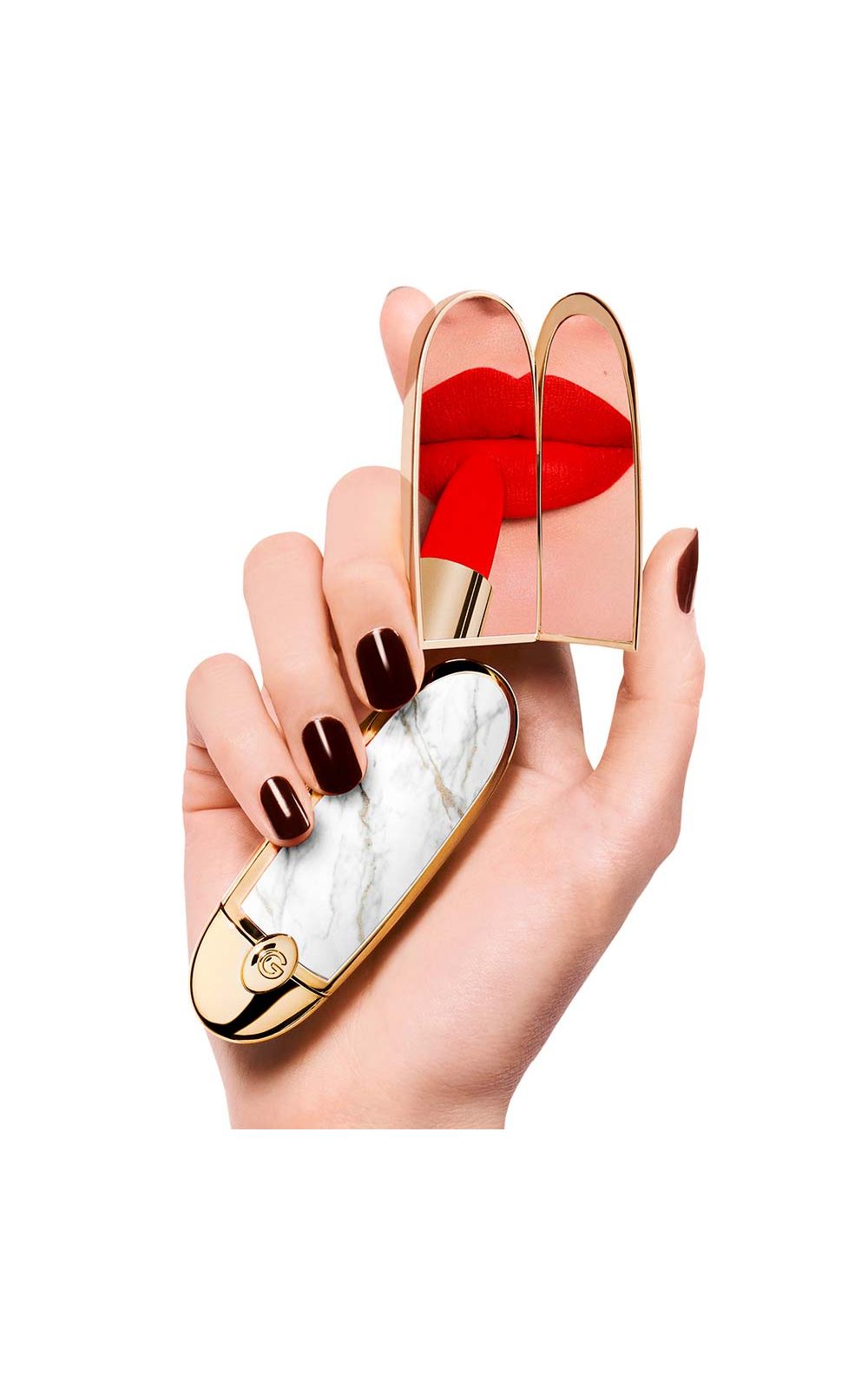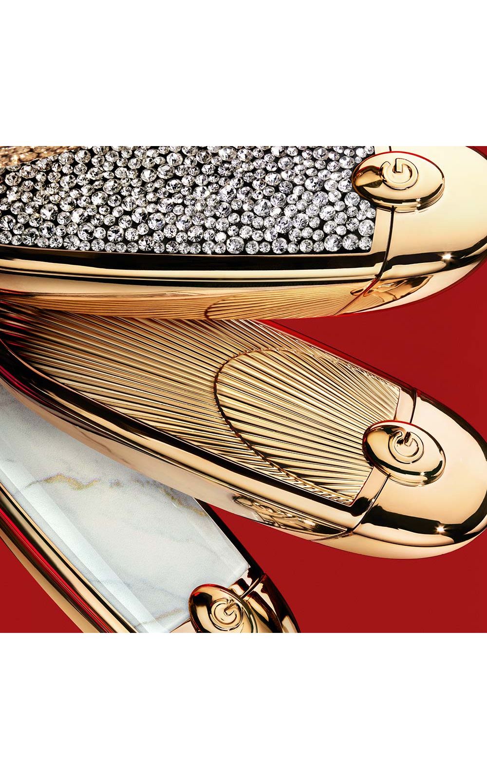 Descubra Rouge G , o Porta-Jóias com espelho duplo, para completar com um refil. Desenhado pelo joalheiro Lorentz Baumer, Rouge G é o item de luxo por excelência para os lábios, com um espelho duplo secreto. O Estojo Rouge G é reinventado a cada coleção, com novas cases para personalizar seu batom como quiser.