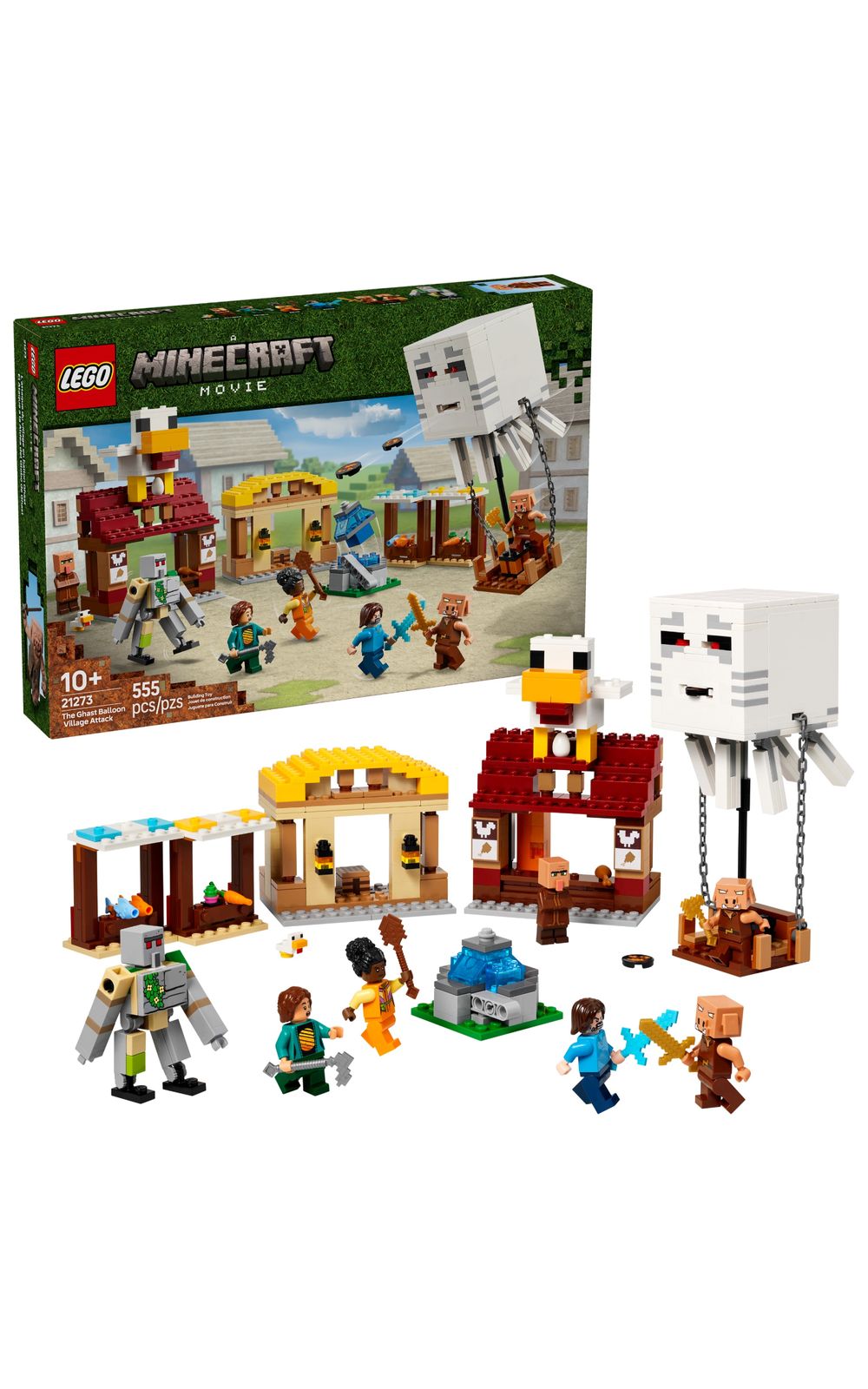 Cod LEGO: 21273Descrição Comercial: O Ghast Balloon Village Attack (21273) é um conjunto de construção de videogame baseado em uma cena do filme Minecraft®. Este brinquedo LEGO® Minecraft de alta qualidade para crianças apresenta ação explosiva quando um ataque é lançado de um balão, tornando este conjunto de videogame LEGO uma ótima ideia de presente para meninos e meninas de 10 anos ou mais.O conjunto apresenta personagens populares do videogame: Steve, Natalie, Dawn, 2 piglins, um balão fantasma, aldeão, pintinho e uma figura de golem de ferro ajustável. O balão tem espaço para os piglins e incorpora um disparador de disco. Entre a vila estão barracas de mercado, o restaurante de frango frito de Steve, sua cabana de artesanato e uma fonte, que as crianças podem "explodir" usando um recurso integrado. O telhado do restaurante é coberto com um grande modelo de galinha que inclui uma divertida função de postura de ovos. Para diversão digital, o aplicativo LEGO Builder permite que as crianças ampliem, girem modelos em 3D e acompanhem seu progresso.Presente para jogadores LEGO® Minecraft® O brinquedo Ghast Balloon Village Attack para crianças é um conjunto criativo de construção e brincadeira para meninos e meninas de 10 anos ou mais que recria uma cena do filme MinecraftBonecos de brinquedo Minecraft® Este conjunto de videogame prático inclui minifiguras de Steve, Natalie, Dawn e um aldeão, além de um balão fantasma, um pintinho, 2 piglins e uma figura de golem de ferro ajustávelConjunto de videogame LEGO® Quando os piglins lançam mísseis de seu balão fantasmagórico, fazendo com que a fonte "exploda", as crianças devem defender os moradores e o restaurante de frango frito e a cabana de artesanato de SteveBrinquedo interativo O teto do restaurante apresenta um grande modelo de galinha, que inclui uma divertida função de postura de ovosPresente de jogador para crianças Este brinquedo montável de alta qualidade para meninos e meninas de 10 anos ou mais é uma ótima ideia de presente para fãs do filme Minecraft®Instruções de construção 3D As crianças podem baixar o aplicativo LEGO® Builder para uma experiência de construção envolvente, com ferramentas digitais para ampliar e girar modelos em 3D, salvar conjuntos e monitorar o progressoMinecraft® tornado realidade Os brinquedos de construção LEGO® Minecraft para crianças oferecem aos jogadores uma maneira diferente de aproveitar o jogo, com mobs, cenas e recursos trazidos à vida com a criatividade prática dos blocos LEGOConjunto de 555 peças Este conjunto versátil inclui um balão fantasmagórico medindo mais de 18 cm de alturaDestaques: LançamentosIdade: 12 anos ou maisIdade Mínima: 10Interesses: FilmesLimite de venda: 2Número de peças: 555Peças: 400 - 699Recomendações (pdp): ATENÇÃO! NÃO RECOMENDÁVEL PARA CRIANÇAS MENORES DE 3 (TRES) ANOS POR CONTER PARTE(S) PEQUENA(S) QUE PODE(M) SER ENGOLIDA(S) OU ASPIRADA(S) E BOLINHAS QUE PODEM APRESENTAR PERIGO DE ASFIXIA. NÃO APROPRIADO PARA MENORES DE 3 ANOS. NÃO APONTAR PARA OS OLHOS E PARAA FACE. NÃO UTILIZAR PROJÉTEIS DIFERENTES DOS PROVIDOS E DOS INDICADOS PELO FABRICANTE DO BRINQUEDO Nº de Registro: 005830/2021Vídeos: https://www.lego.com/cdn/cs/set/assets/bltc78905e4d3aa0368/21273_360_SoMe.mp4#t=0.1,naorecomendado_3anos: SimqtdVendasPorCliente: 2
