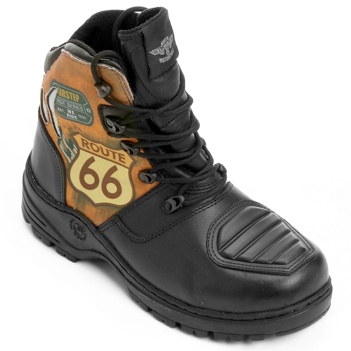 Nome: Bota de Motociclismo Air Step Route 66 Gênero: Masculino Cabedal: Couro Forro: Poliéster Entressola: Palmilha em PVC Solado: Borracha Peso do Produto: 445g (*o peso do produto varia de acordo com a numeração)