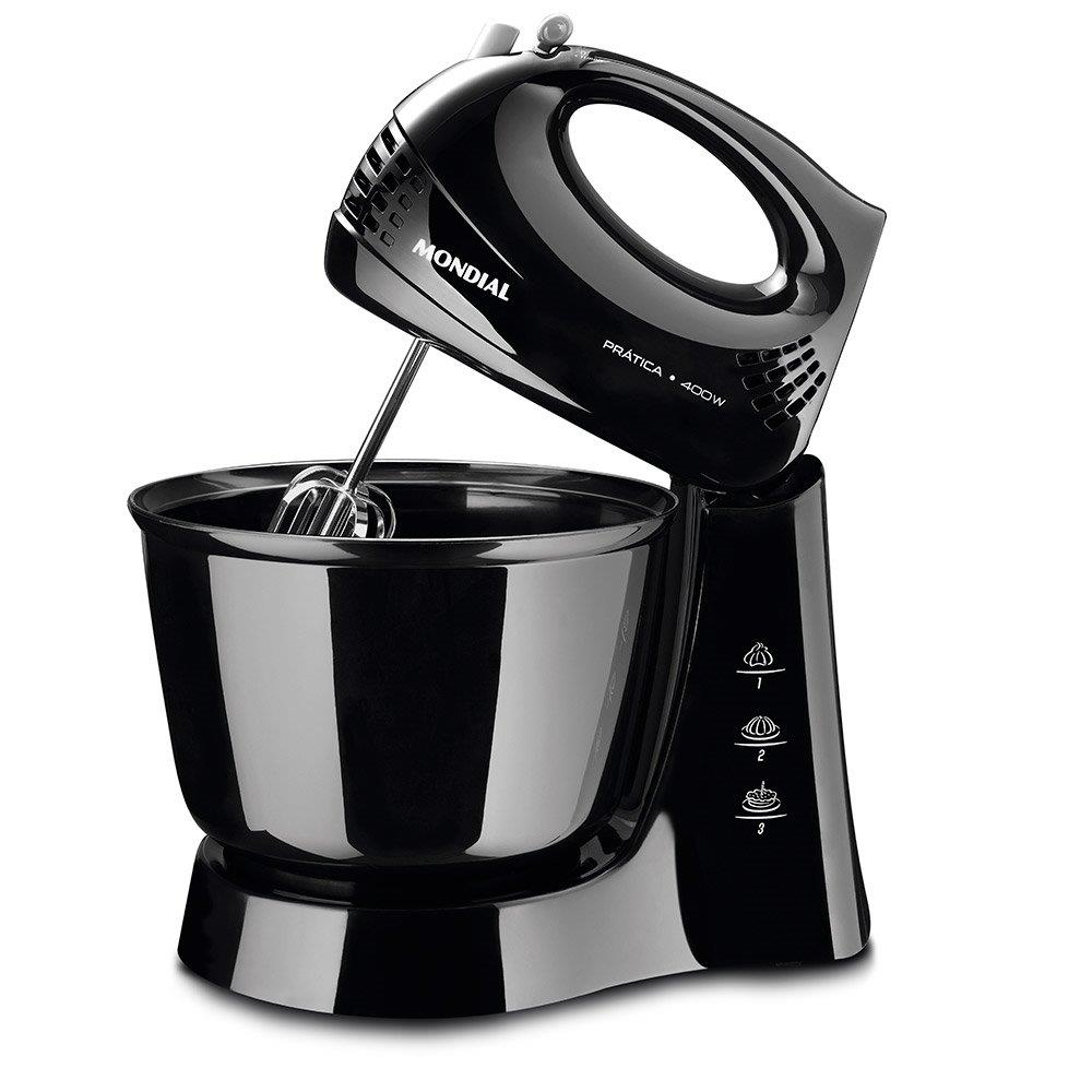 Informações Adicionais: Marca: Mondial Cor: Preta Modelo: B-44 400W de Potência Tigela grande de 3,6 L 3 velocidades + turbo Botão Ejetor e sistema exclusivo de fixação Melhor performance dos batedores em aço cromado Diferencial: Praticidade / Agilidade