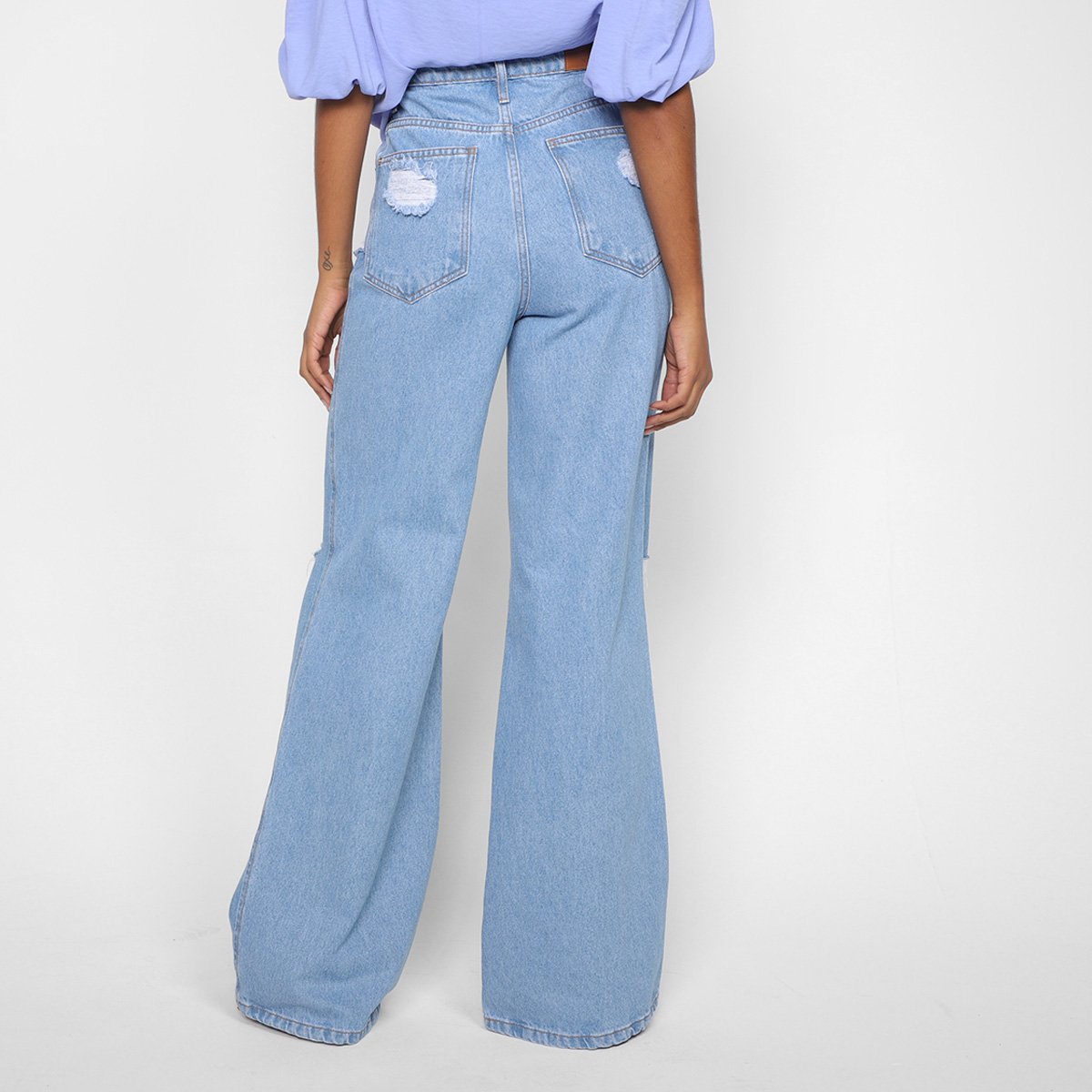 Calça Jeans Wide Leg Lança Perfume Destroyed Feminina