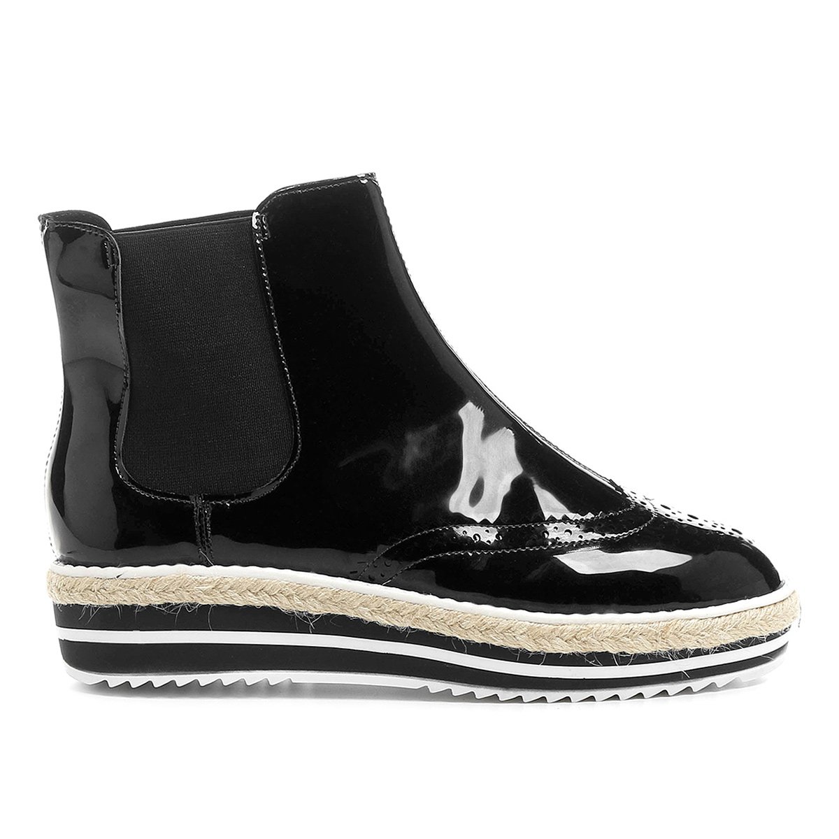Mix de tendências, a Bota Cano Baixo Vizzano Flatform Feminina é ideal para ousar e arrasar na temporada. O modelo chelsea conta com detalhes em brogues, sola com corda e base tratorada.