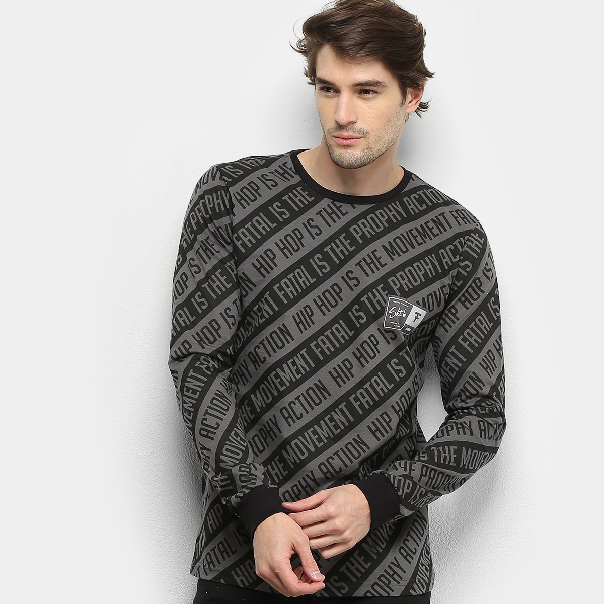 Nome: Camiseta Fatal Manga Longa Hip Hop Masculina Gênero: Masculino Dimensões Aproximadas: Ombro: 47 cm, Tórax: 110 cm, Manga: 68 cm, Comprimento: 71 cm