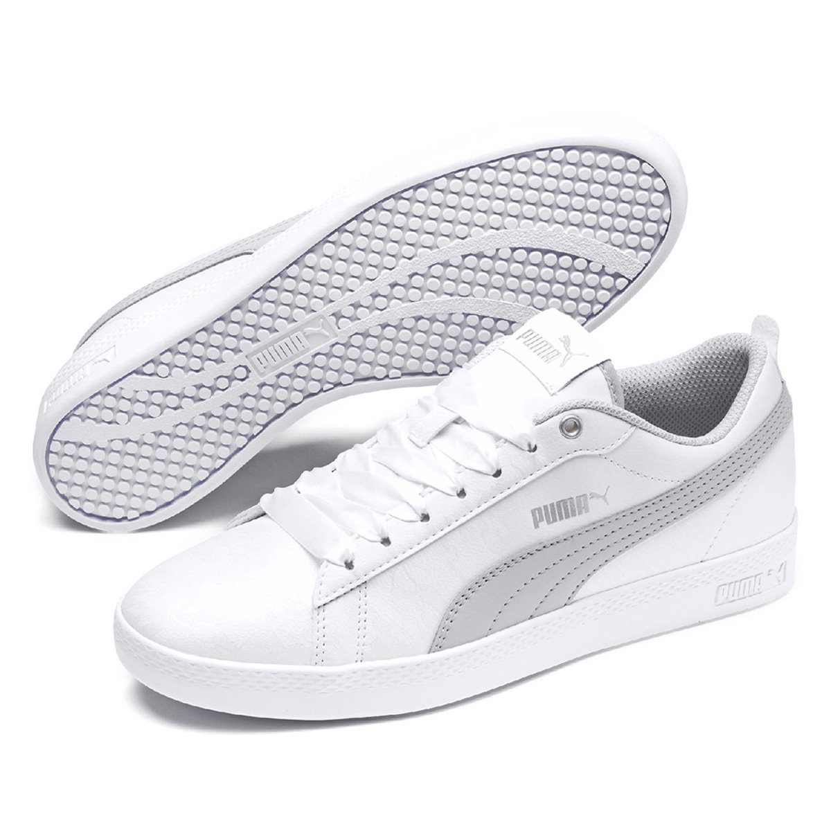 Nome: Tênis Puma Smash Wns v2 Summer Pack Feminino Gênero: Feminino Modelo: 370444 02, 370444 01 Material Interno: Têxtil Linha: Smash Solado: Borracha Composição: Cabedal: Material sintético com estampa discreta de flores e cadarço de fita de setim. Solado: Borracha resistente. Peso do Produto: 261 gr (o peso do produto varia de acordo com a numeração)