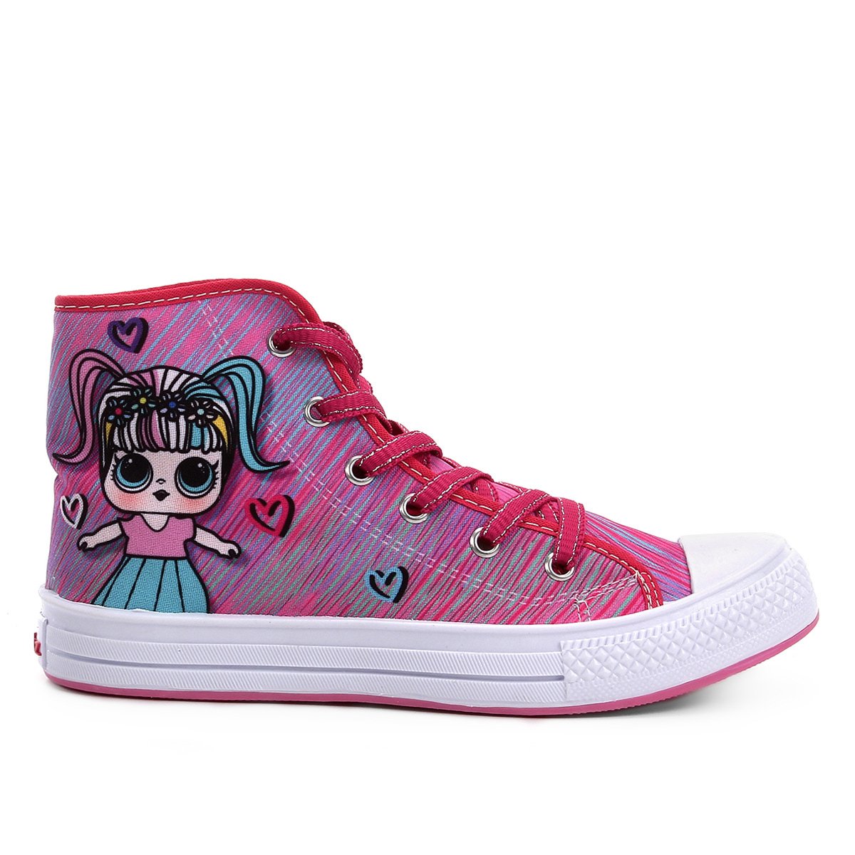 Nome: Tênis Cano Alto Infantil Kurz Estampa Lolove Feminino Gênero: Feminino Material Interno: Têxtil Peso do Produto: 279 g (o peso do produto varia de acordo com a numeração)