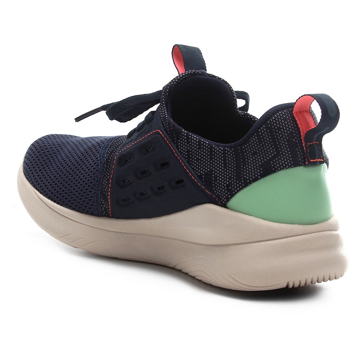 Composição: Cabedal: Material têxtil com aplicação em material sintético par maior suporte com respirabilidade, palmilha removível e lingueta integrada. Entressola: Amortecimento em EVA resistente, superFoam. Solado: EVA e borracha.