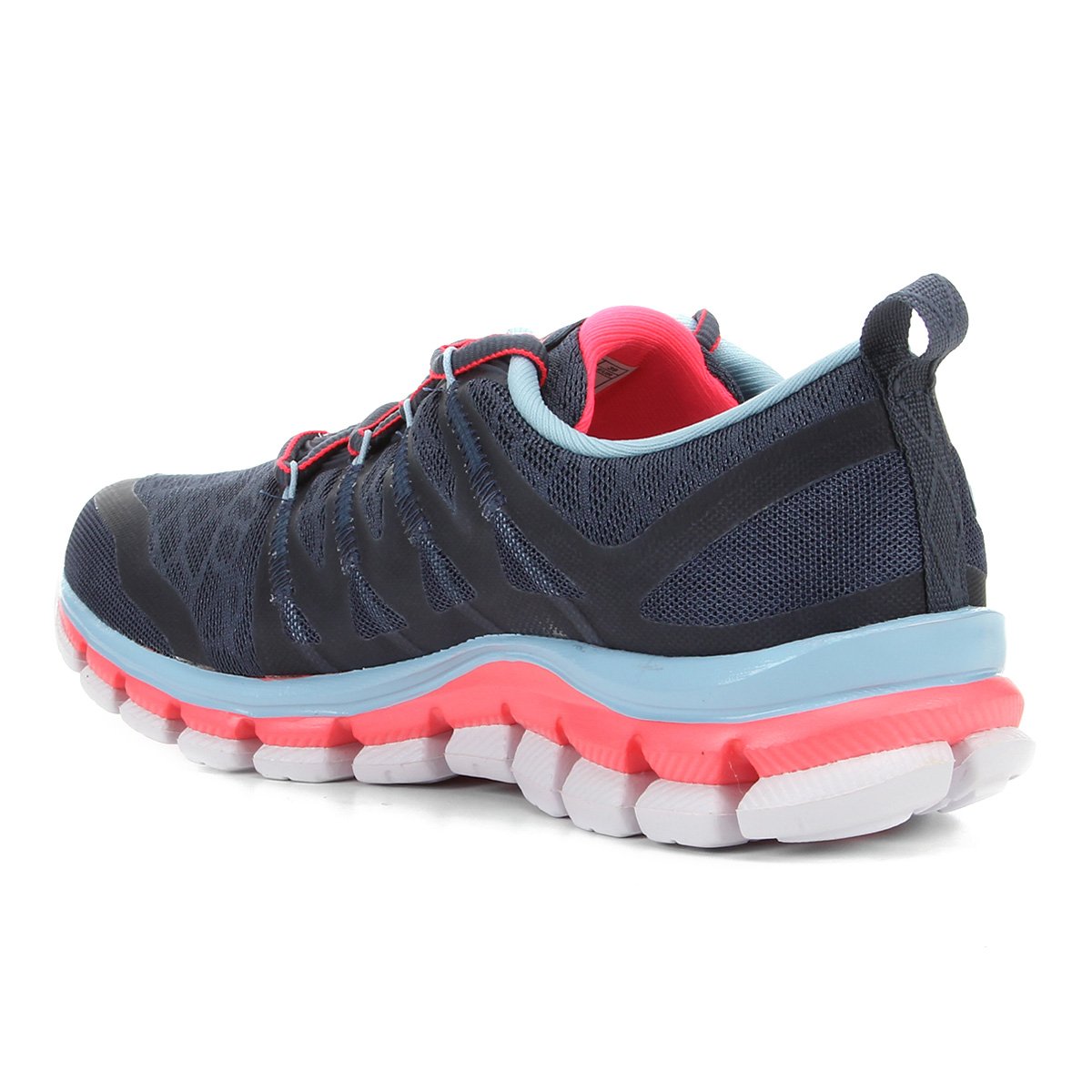 Composição: Cabedal: Sintético, tela e tecido dupla frontura com forro em tecido poliéster e espuma; Palmilha interna anatômica, composta por tecido poliéster e EVA; Solado: Dupla camada de EVA com tecnologia Evasense