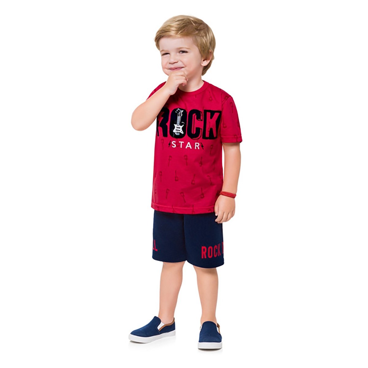 Nome: Conjunto Infantil Kyly Camiseta + Bermuda Moletom Rock Star MasculinoGênero: MasculinoItens Inclusos: 1 camiseta e 1 bermudaGarantia do Fabricante: Contra defeito de fabricaçãoOrigem: Nacional