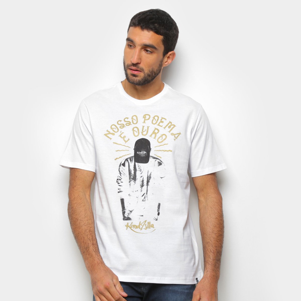 Nome: Camiseta Kondzilla Nosso Poeta MasculinaGênero: MasculinoDimensões Aproximadas: Modelo Veste M: Ombro: 46 cm, Tórax: 110 cm, Comprimento: 73 cmGarantia do Fabricante: Contra defeito de fabricaçãoOrigem: Nacional