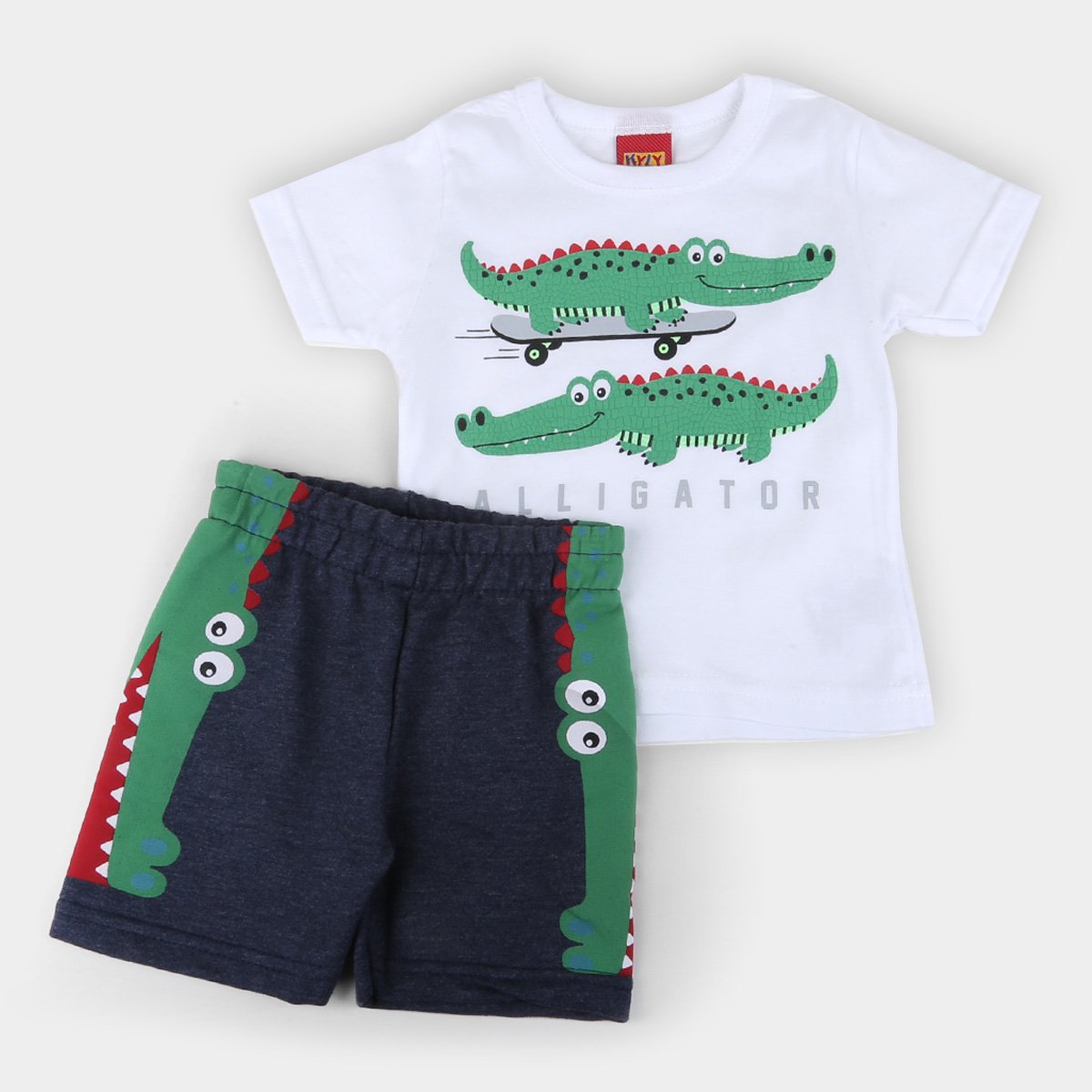 Conjunto Bebê Kyly Camiseta + Bermuda Moletom Jacaré Masculino