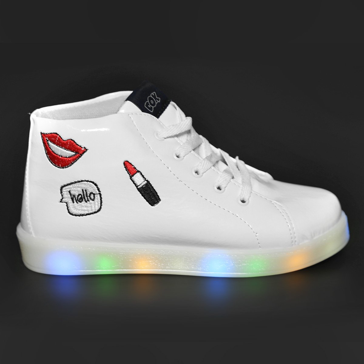 O Tênis Infantil Cano Alto Dok Viena Light Feminino faz referência ao estilo street com os patches bordados na lateral. Além do design descolado, conta com luzes led no solado para maior diversão.