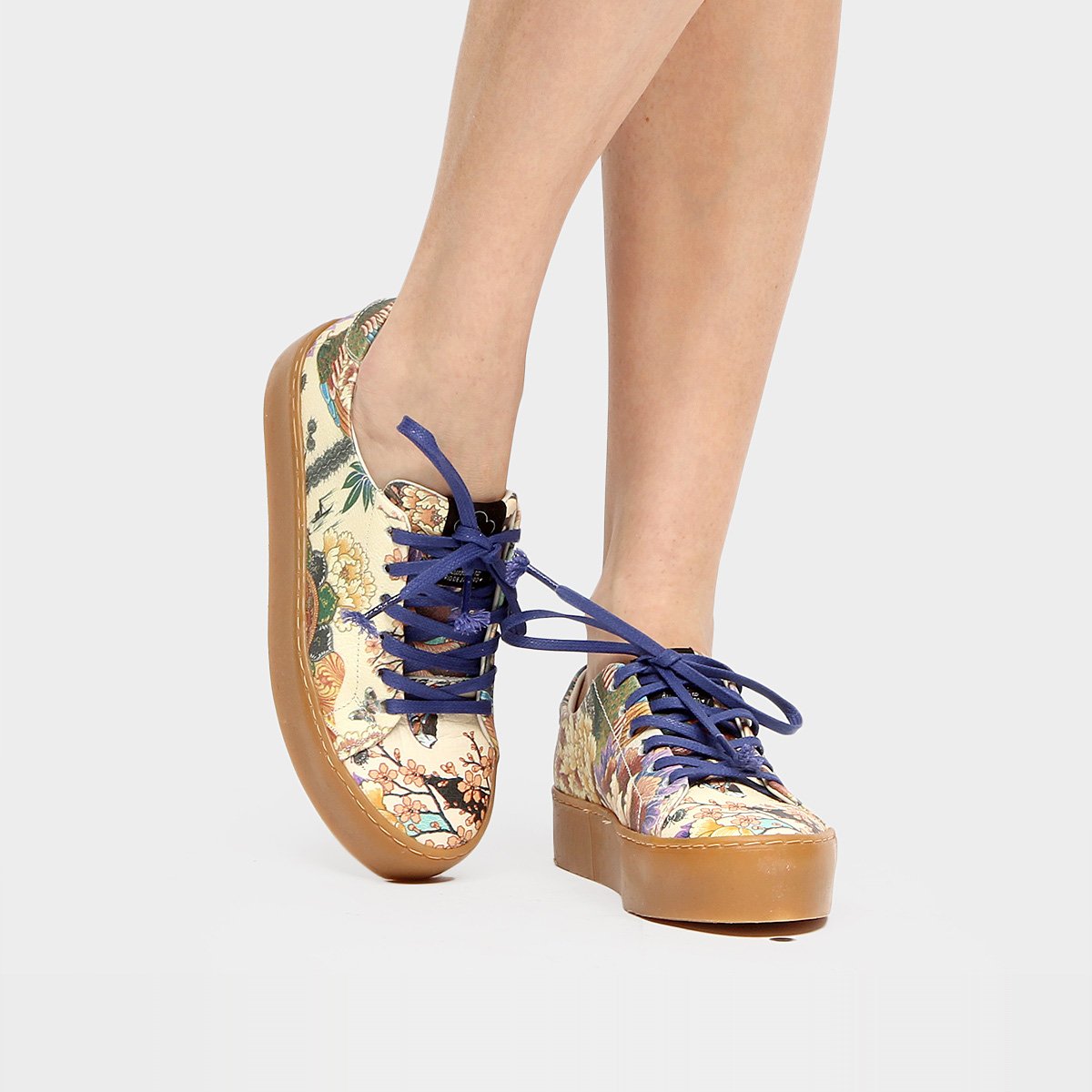 Para quem gosta de inovar no estilo, o Tênis Farm Avenida Liberdade vem representando os modelos estampados. Seu solado plataforma de 4 cm segue a tendência dos solados mais grossos.