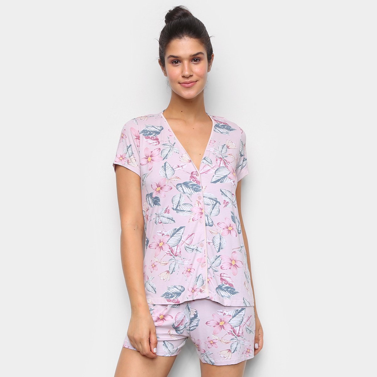 Pijama Cor Com Amor Shorts Doll Com Abertura Floral Feminino