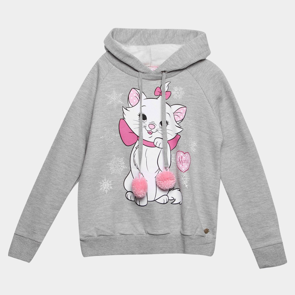 Para as meninas que adoram a gatinha mais charmosa da TV, escolha o Moletom Fakini Disney Marie Infantil. Confeccionado em algodão, o modelo possui capuz com amarração no pescoço e detalhe em pompom.
