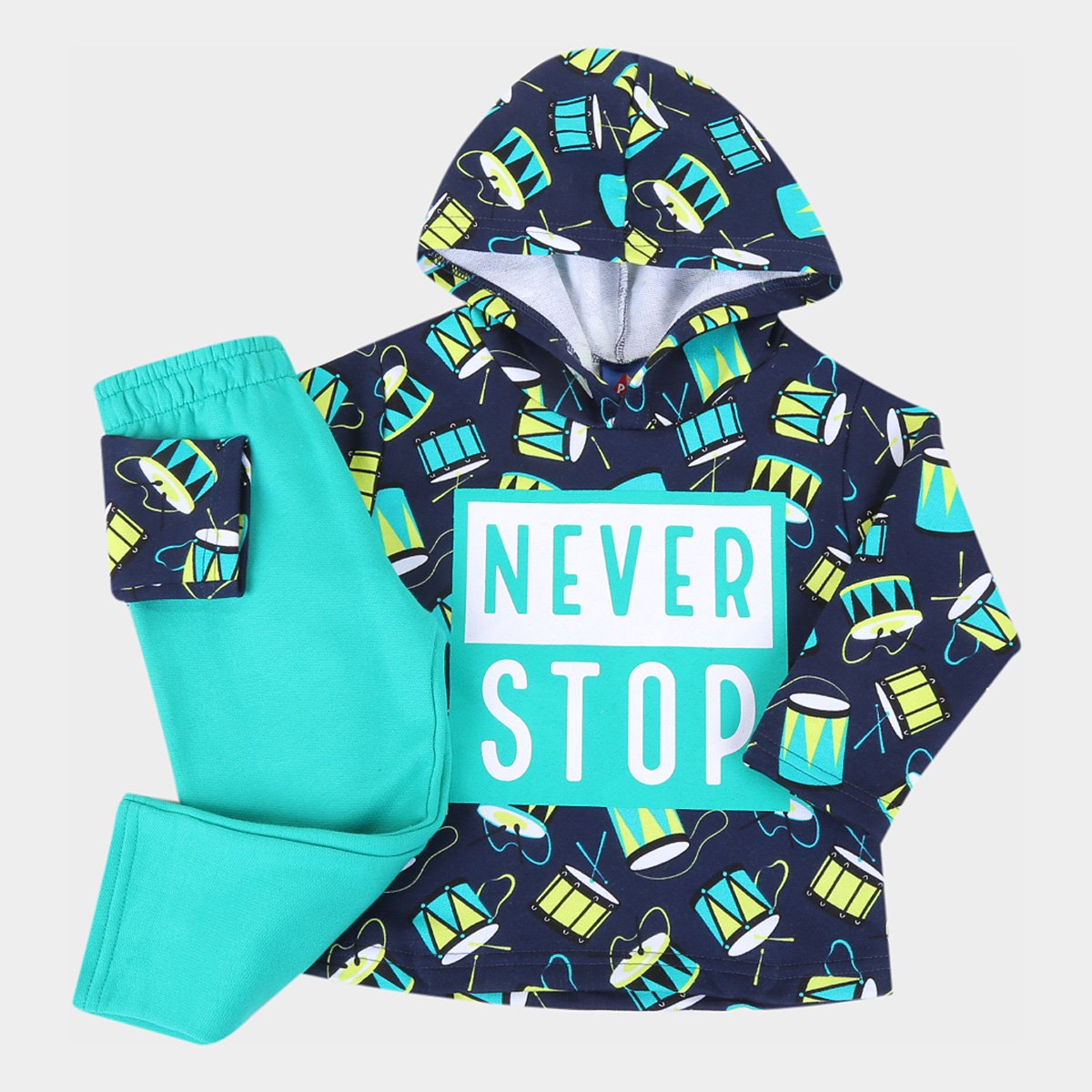 Nome: Conjunto Bebê Pipa Percussão Never Stop MasculinoGênero: MasculinoDimensões Aproximadas: Ombro: 27 cm ,Tórax: 60 cm ,Manga: 27 cm ,Comprimento: 38 cmItens Inclusos: 1 Blusa e 1 CalçaGarantia do Fabricante: Contra defeito de fabricação.Origem: Nacional