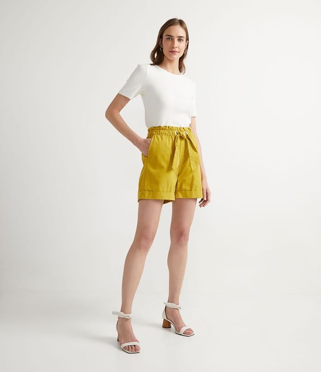 Bermuda clochard em sarja com cinto faixa embutido. Sem estampa o modelo é charmoso e versátil, diferenciando-se pelos detalhes. Possui cós elástico, amarração na cintura e barra dobradinha.