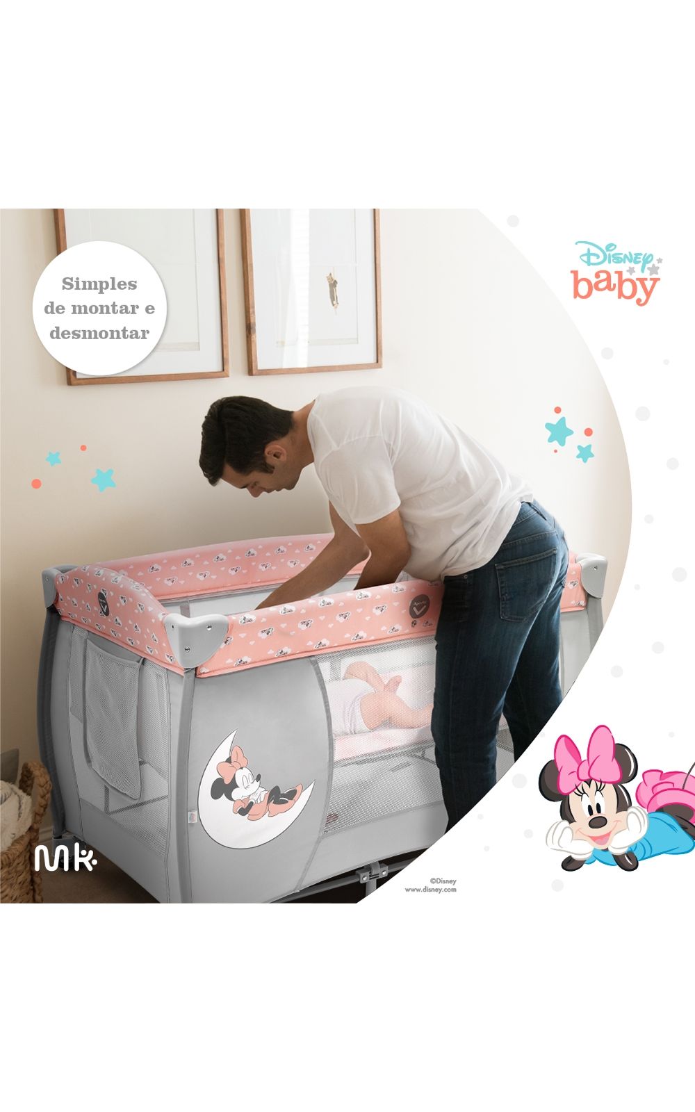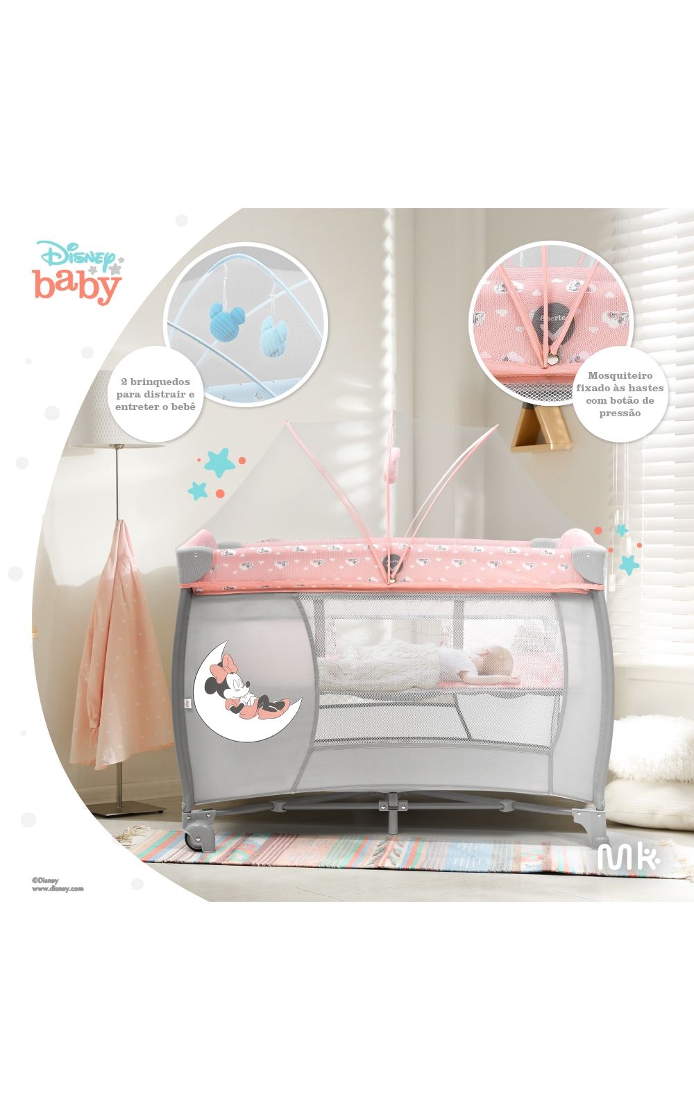 O Berço Desmontável 0 - 15 Kg Minnie Milky Way é ideal para garantir o soninho tranquilo do seu bebê.