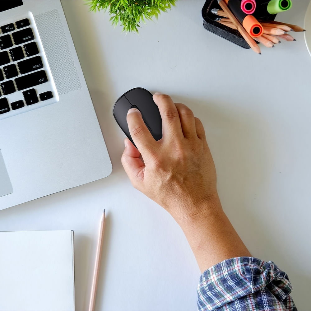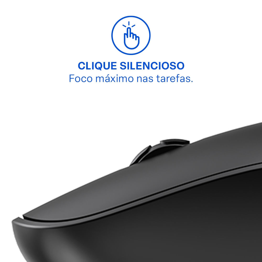 Experimente a sensação de cliques silenciosos e uma precisão incrível com o DPI 1200, permitindo que você seja mais produtivo e ágil em suas tarefas. A conexão 2.4GHz garante uma transmissão estável de até 10 metros de distância, evitando interferências e quedas de sinal.