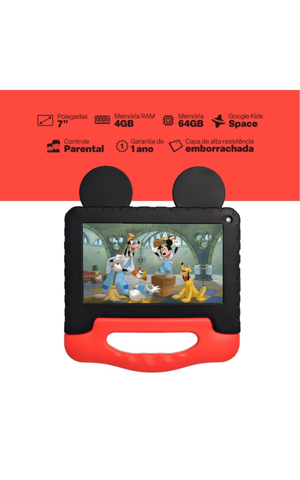 *Indicado para +3 anos. Vem com case emborrachado que permite ajuste de ângulo facilitando o uso do seu pequeno!