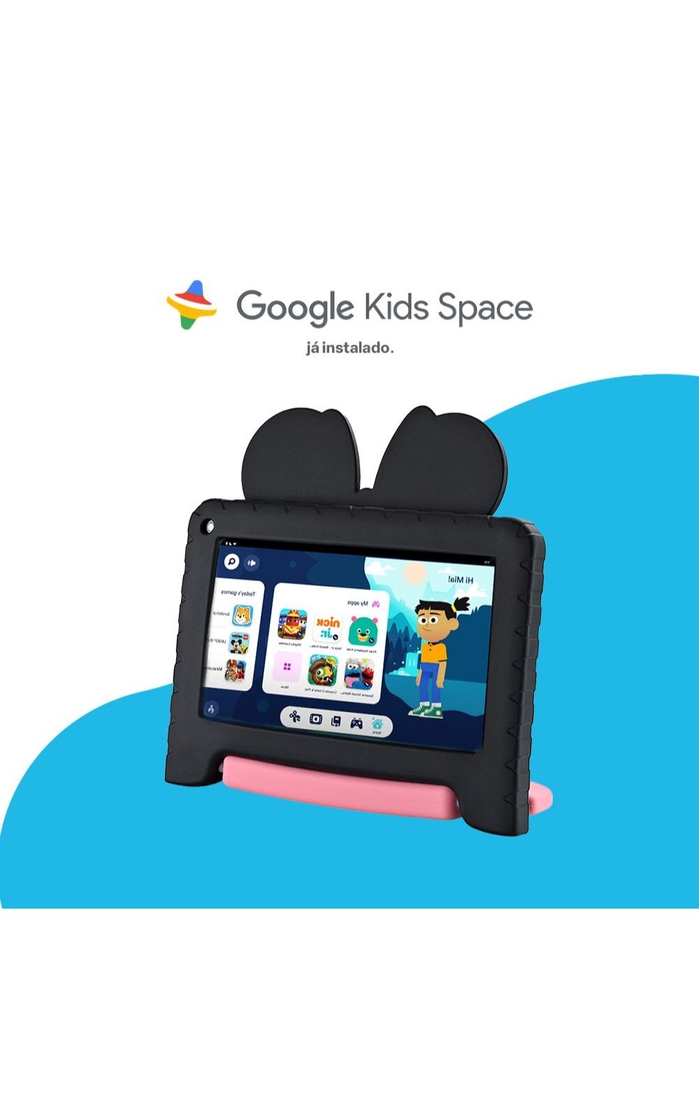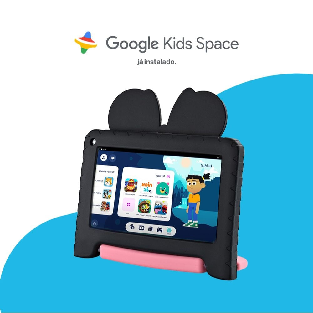 O Seu tablet da Minnie possui o Google Kids Space, que é um ambiente seguro e divertido. Desenvolvido pela Google, o Google Kids Space proporciona inúmeros conteúdos educacionais e de entretenimento, para que voce possa aproveitar o seu tablet de maneira divertida e criativa!