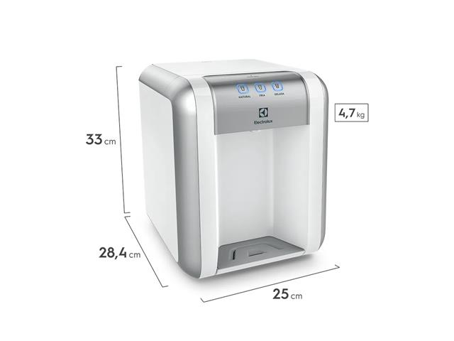 PRINCIPAIS CARACTERÍSTICAS:A qualidade da água que você consome tem de ser a melhor possível, nesse contexto, apresentamos Purificador de Água com Painel Touch Electrolux, para ajudar você e sua família a proporcionar boa saúde. O Purificador de Água é aquele item que vai cooperar com a saúde de sua família, pois possui um filtro de carvão ativado que retira odores e gostos e o filtro de polipropileno que retira partículas para manter sua água sempre limpa e pura. Quando o filtro do purificador estiver saturado, uma luz irá avisar que é hora de troca-lo, que pode ser feita por você mesmo, de forma fácil e prática. Além disso, o Purificador de água Electrolux disponibiliza 3 tipos de temperaturas de água: natural, fria ou gelada, o que propicia muito mais conforto e prazer ao beber água pura. Excelente aquisição para consumidores exigentes.ESPECIFICAÇÕES DO PRODUTO: Bivolt COLETOR DE ÁGUA REMOVÍVEL: Sim ESTÁGIOS DE PURIFICAÇÃO: 2 FÁCIL TROCA DO FILTRO: Sim FLUXOCONTÍNUO: Sim LUZ INDICADORA DE FILTRO SATURADO: Sim OPÇÕES DE TEMPERATURA: Natural e Gelada PAINEL BLUE TOUCH: Sim PÉS DE BORRACHA ANTI-DERRAPANTE: Sim RESFRIAMENTO DA ÁGUA: Sim SUPORTES PARA FIXAÇÃO EM PAREDE: Sim ITENS: PURIFICADOR +FILTRO +ACESSÓRIOS CAPACIDADE DE RESFRIAMENTO (L/H): 0,24 ARMAZENAMENTO AGUA GELADA (L): 0,8 TEMPERATURA MEDIA DA AGUA GELADA: 10°C CAPACIDADE DO RESERVATÓRIO: 0,8L MODELO: PE11B FREQUÊNCIA: 60 Hz ALTURA DO PRODUTO: 33 cm LARGURA DO PRODUTO: 25 cm PROFUNDIDADE DO PRODUTO: 28,4 cm PESO BRUTO: 5,7 kg PESO DO PRODUTO: 4,7 kg Garantia de 12 meses contra defeito de fabricaçãoIMAGENS MERAMENTE ILUSTRATIVAS