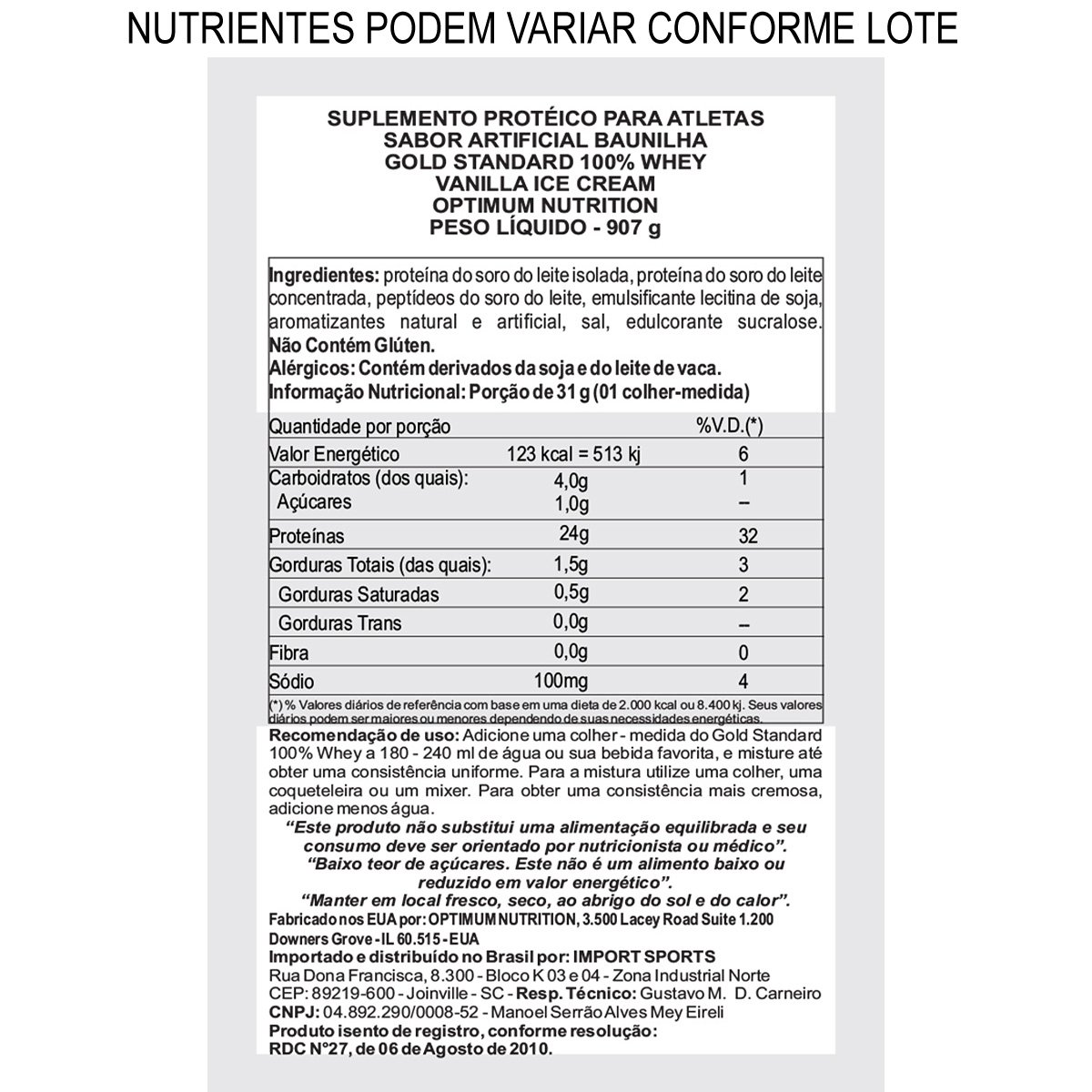 OBS: Nutrientes podem variar conforme o lote
