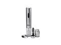 ESPECIFICAÇÕES DO PRODUTO: - Elegante abridor elétrico de vinho em aço inoxidável que funciona com 4 pilhas pequenas AA apertando apenas um botão - Praticidade para retirar a proteção da rolha com o cortador de lacres de alumínio - Sirva o vinho na medida com o bico para servir - O anel antigotas permite servir o vinho de maneira fácil e sem sujeira - Utilize a bomba a vácuo para fechar a garrafa e mantenha as propriedades do vinho após aberto