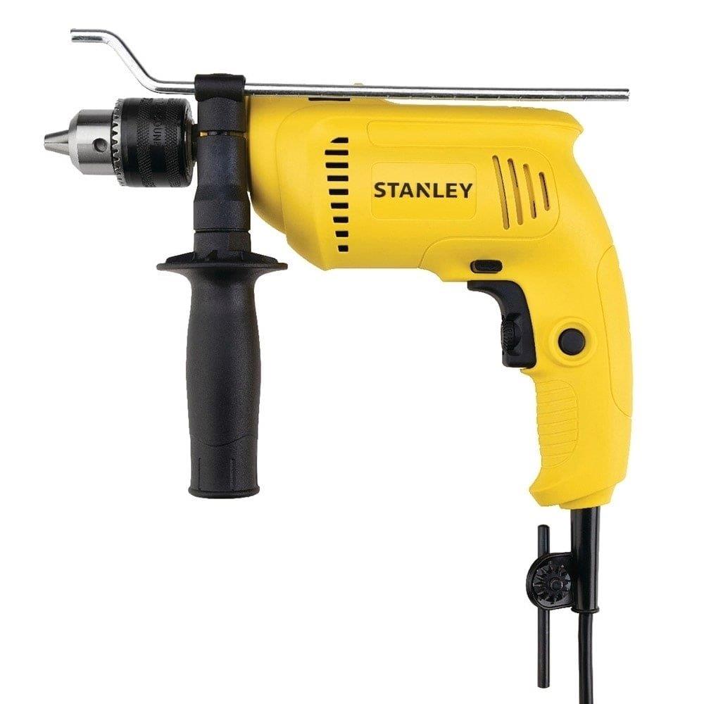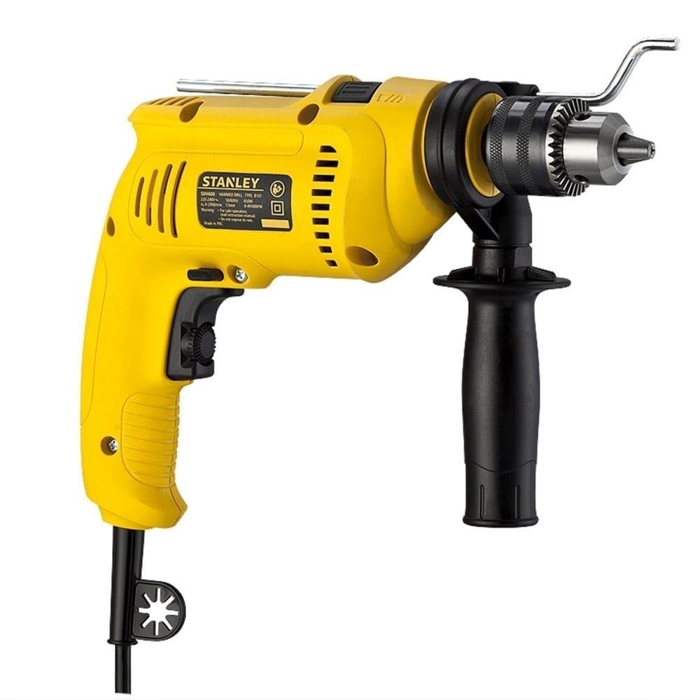 Características Principais:Marca: StanleyCor: Amarelo Ferramenta: Furadeira de impactoPotência: 600WVelocidade: 0 - 2.900 RPMImpacto: 0 - 49.300 GPMMandril: 1/2 pol (13mm)Peso: 1,55 kgInformações Adicionais:Capacidade de Perfuração:Aço: 13mmMadeira: 25mmAlvenaria: 13mmGatilho eletrônico de dois dedos com trava para uso contínuoDesenho compacto e ergonômicoEngrenagens de alta qualidade para maior durabilidadeAnéis de carvão que aumentam a vida útil da ferramentaPorta chave de mandril no cabo elétricoGuia de profundidade metálico e empunhadura lateral para maior controleVelocidade variável e reversível: SimItens Inclusos:Empunhadura lateral com limitador de profundidadeChave do mandrilManualGarantia: 2 anos (ofertada pelo fabricante)Fornecedor: Black Decker