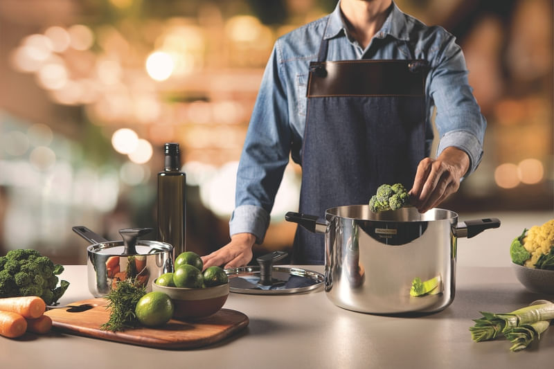 Economiza tempo e energia: o segredo está no corpo triplo (aço inox + alumínio + aço inox), que distribui o calor uniformemente, proporcionando um cozimento mais rápido. Por isso, você pode manter o fogo baixo durante todo o preparo e, assim, poupar energia.