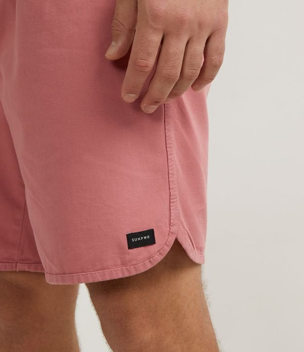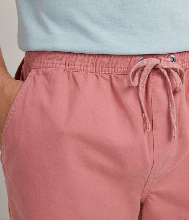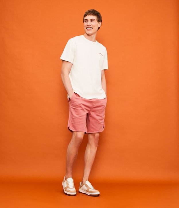 Bermuda masculina, confeccionada em algodão mais sustentável, com cós elástico, cordão para ajuste, bolsos, tag lateral e barra arredondada.